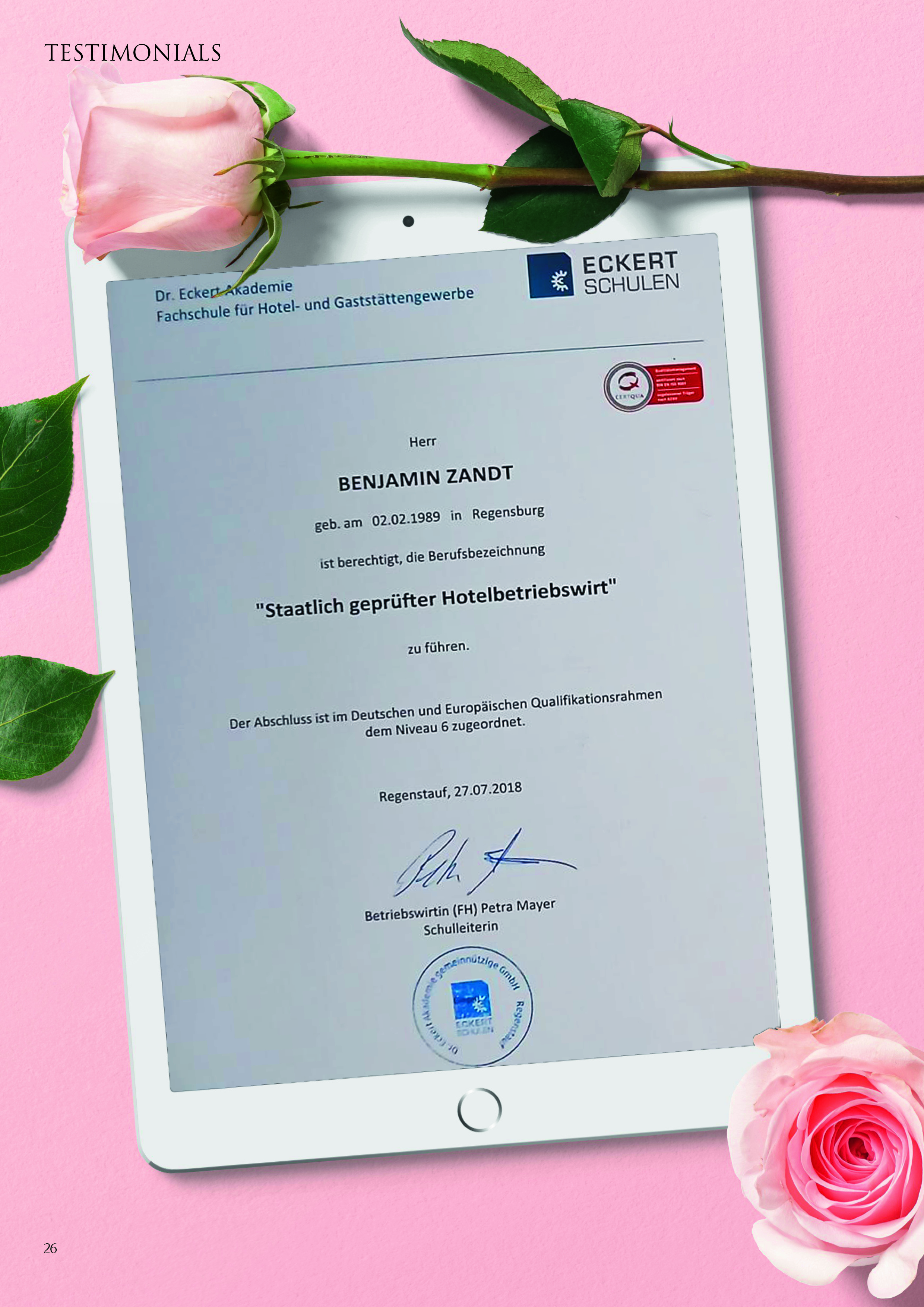 Staatlich anerkannter Hotelbetriebswirt, Schwerpunkt Corporate Identity