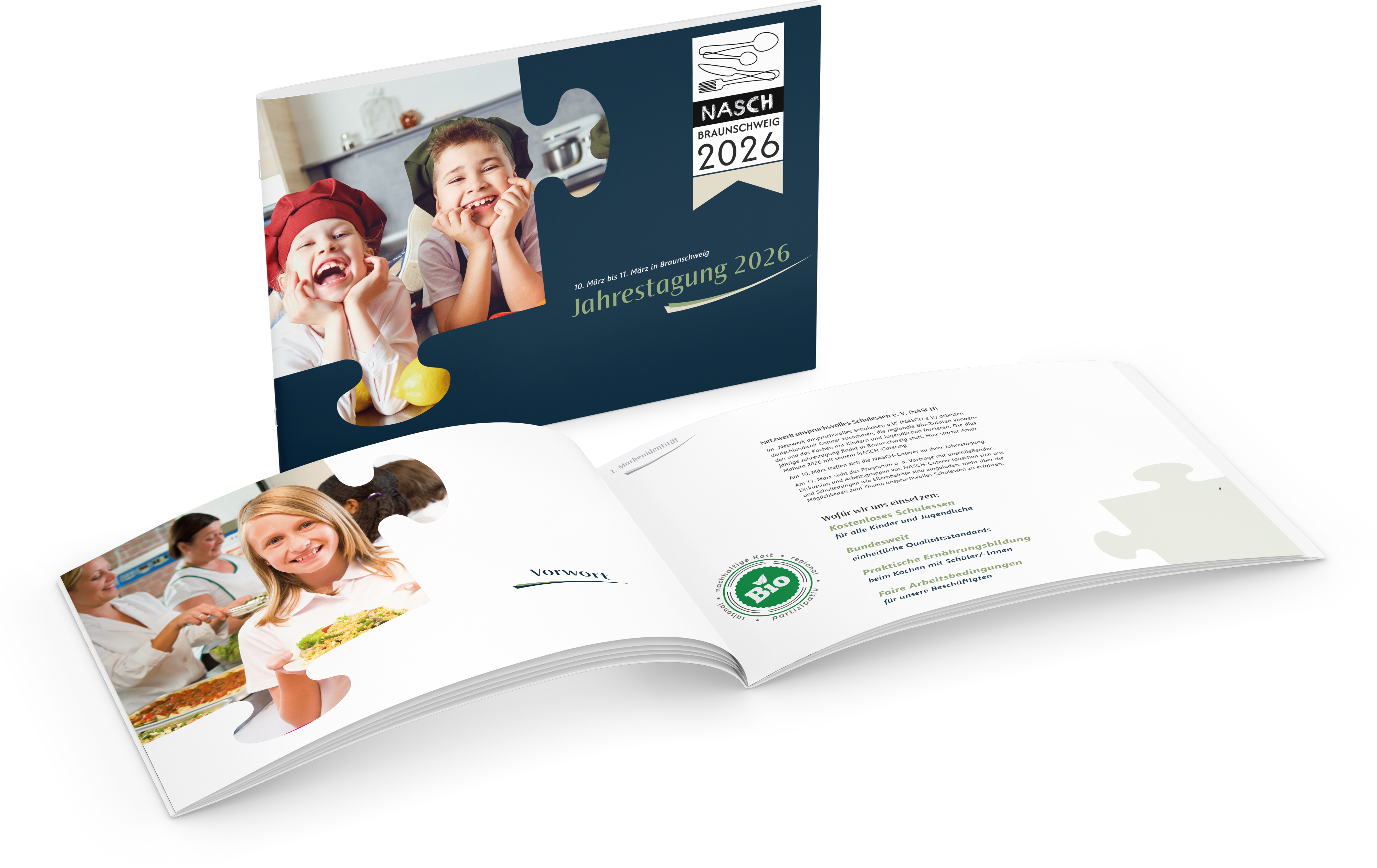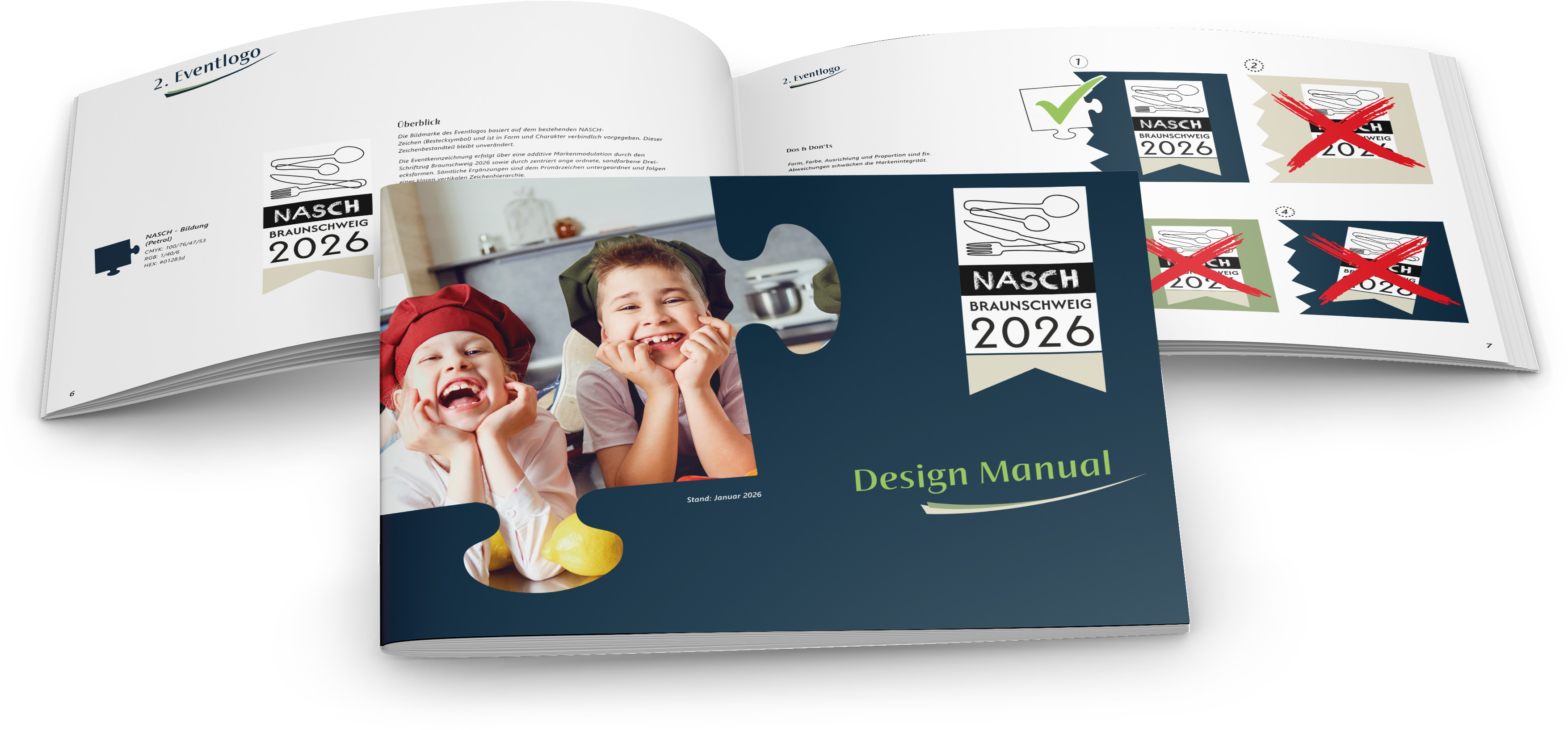 Designkonzept: Puzzleteil als zentrales Element des NASCH-Corporate-Design-Systems